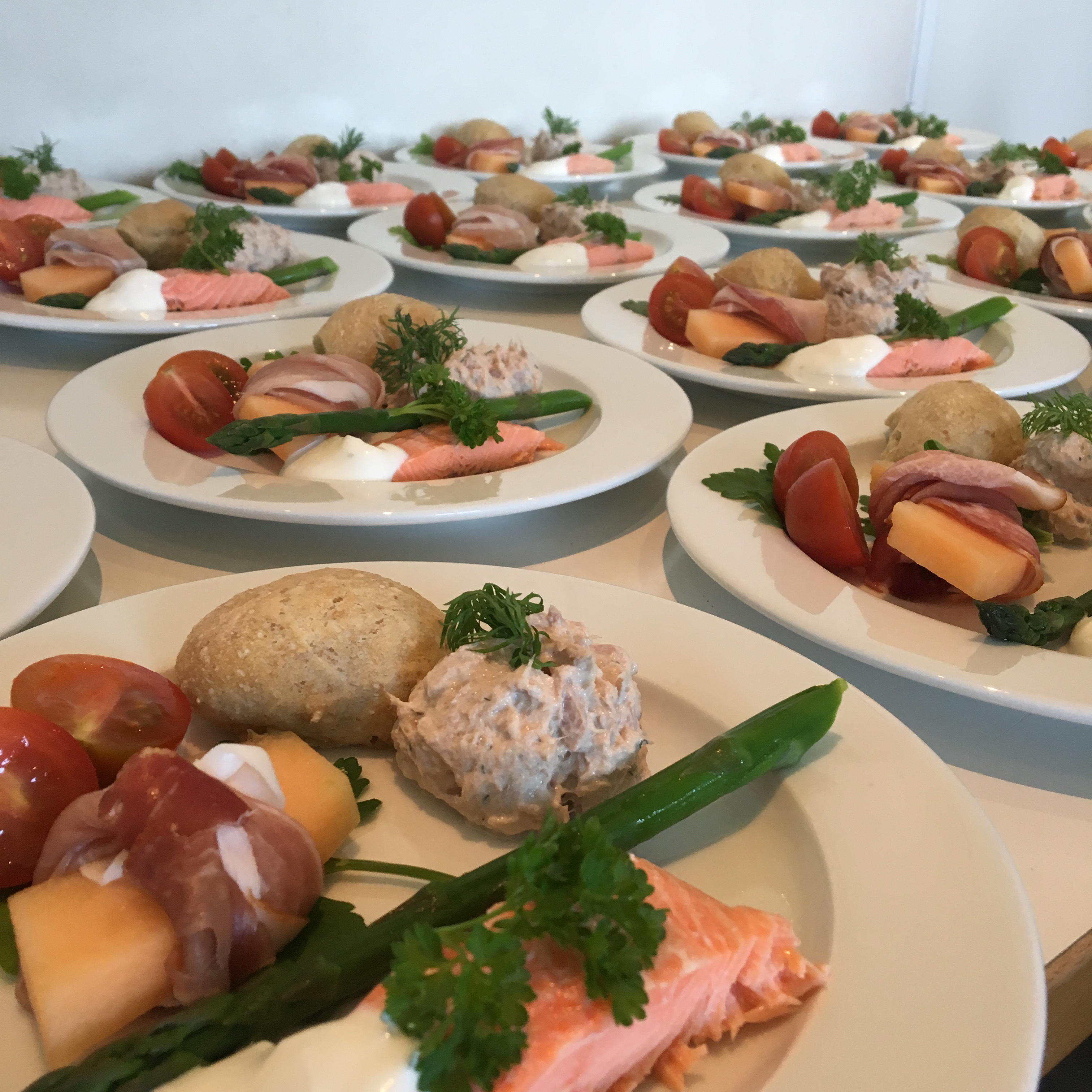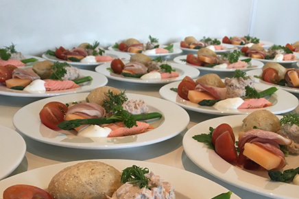 Vi tilbereder maden i eget køkken og af lokale råvarer, når det er muligt. Vi har fokus på kvalitet, gode smagsoplevelser og at maden ser indbydende ud.